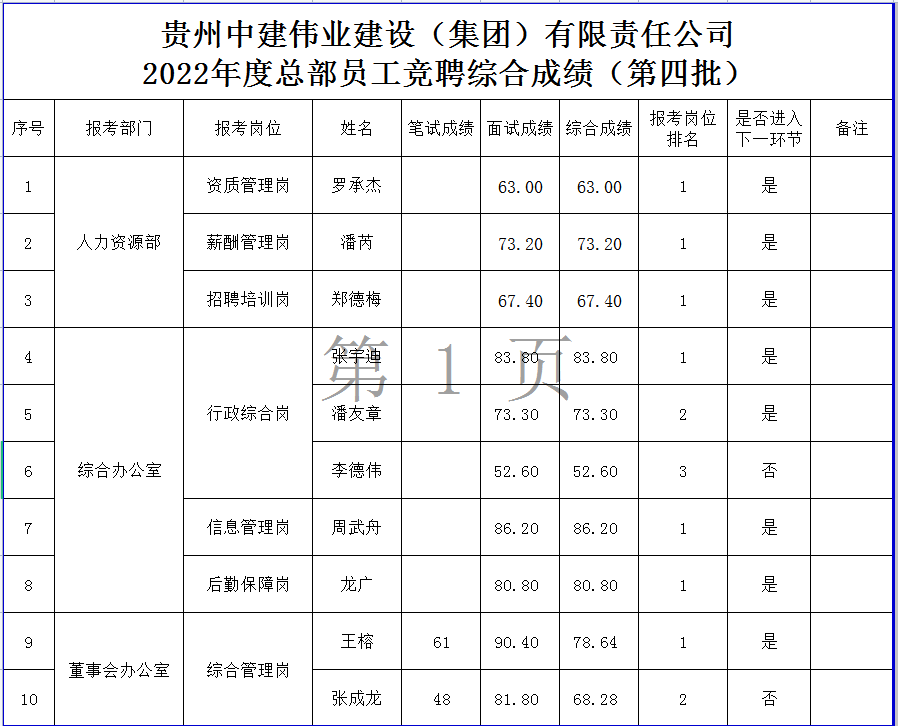附件:2022年度总部员工竞聘综合结果(第四批)
