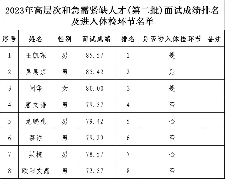 集团任公司2023年高条理和急需紧缺人才(第二批)面试结果及进入体检环节名单公示